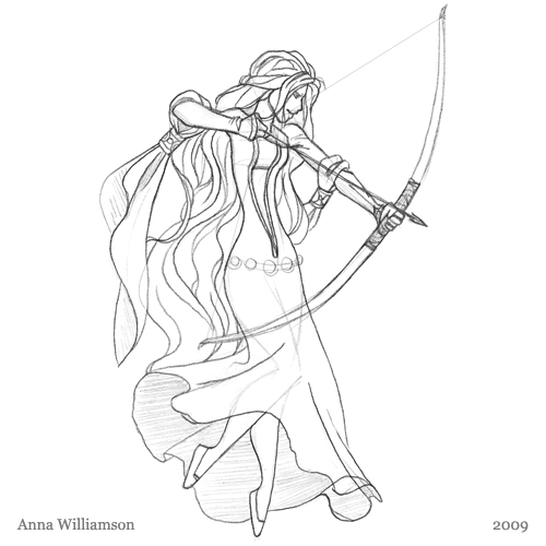 I just found this sketch lying around and thought she looked like she was doing her best impersonation of Cupid, since her feet aren’t touching the ground. Don’t ask me why I drew it like that; I have no idea, aside from laziness and an urge to draw dainty, pointed feet.