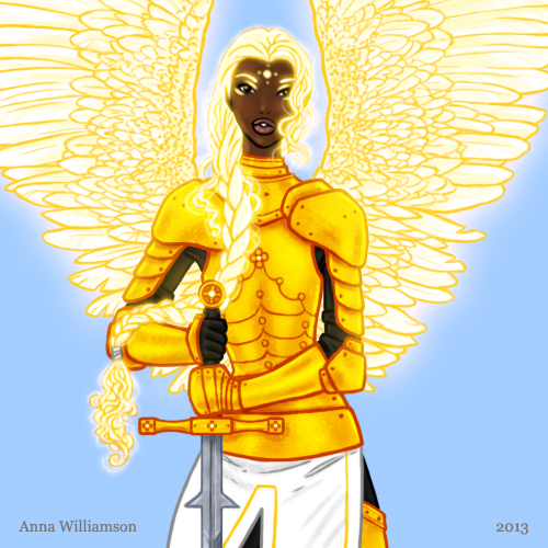 I thought it’d be nice to post a warrior angel for the Michaelmas season, and since the fairy tale princess’s fairy godmother already has the wings for it, I chose her to represent the role, which seemed fitting as fairy godmothers often act as guardian angels.